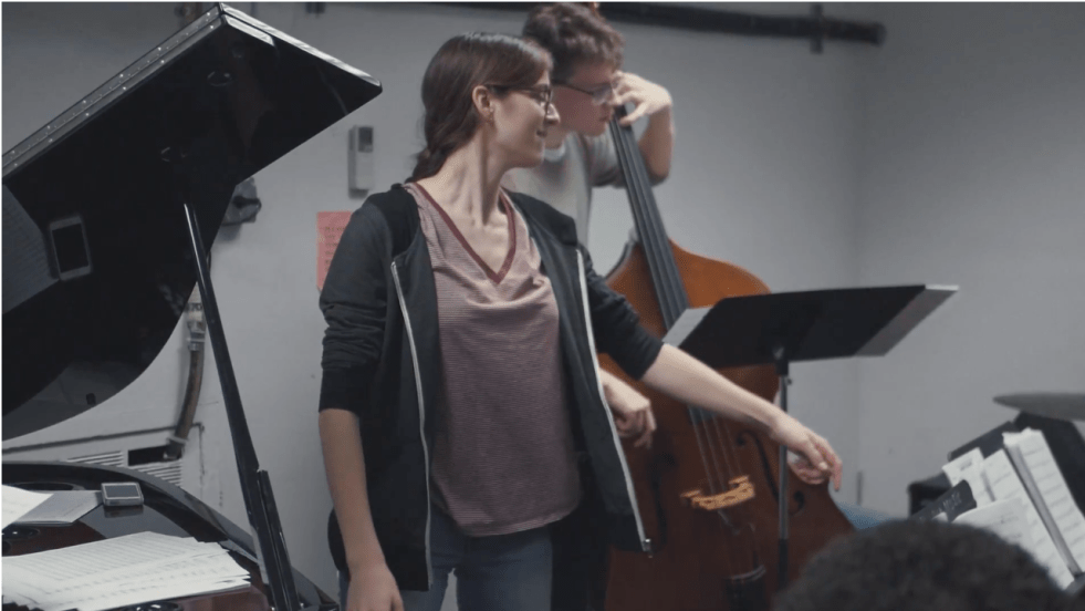 Though Kira doesn’t “play” when she conducts Big Band, at least in the traditional sense, she feels no less involved than if she were–conducting for Kira is more about “performing alongside” the Band. Any “self-consciousness” she feels offstage disappears onstage; it’s as if the music becomes her and the group. The same goes for composition: a space where Kira can enjoy “music-making without the added pressure of performing.” In this space, Kira is able to turn Theory IV assignments into her pieces that the Big Band eventually plays and working through the sometimes-frustrating creative blocks.